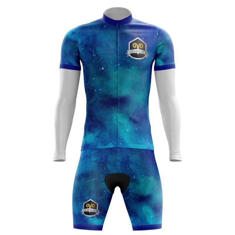 Aries cycling kit. Perfect for cycling, running and even swimming. The comfortable fabric is light, transports moisture away from your body and dries quickly allowing you to perform at your highest level while keeping you cool. These clothes feel just like second skin and will give you the extra boost you need to smash your fitness goals. Buy yours today and become a better athlete.