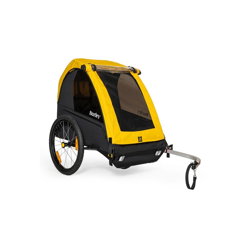 Burley Bee Child Trailer – Double Yellow. The Burley Bee is a long-standing family favorite for biking with children. With UV-protected windows front and rear reflectors and a 5-point harness system the Bee takes both safety and comfort seriously.