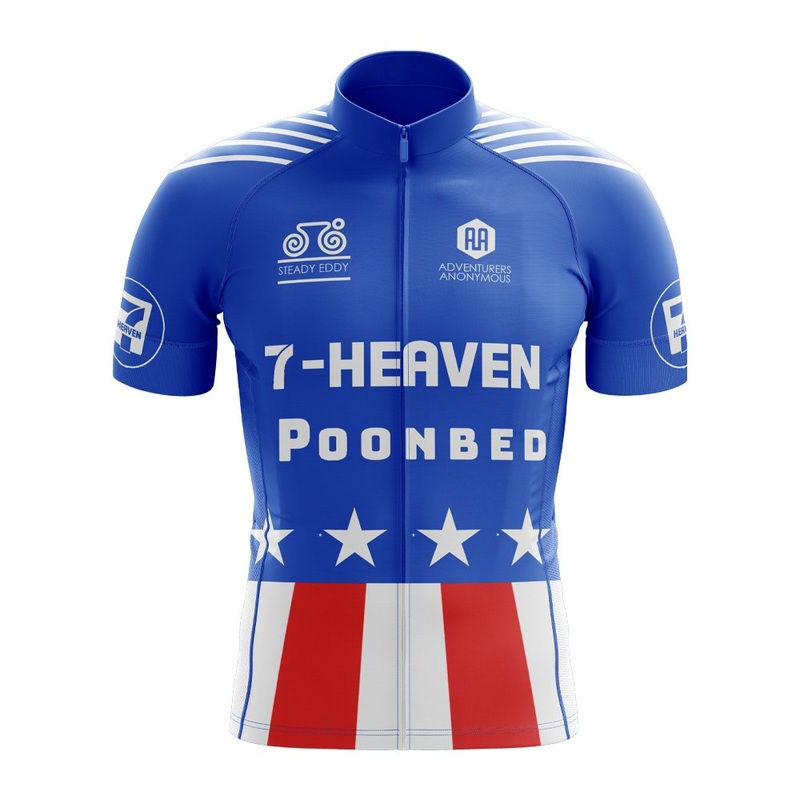 This blue 7-Heaven cycling jersey makes a great gift for your favorite cycling enthusiast. A fun remake of the classic cycling jersey, this new version is made from a quick-dry polyester blend for all-day comfort and durability.