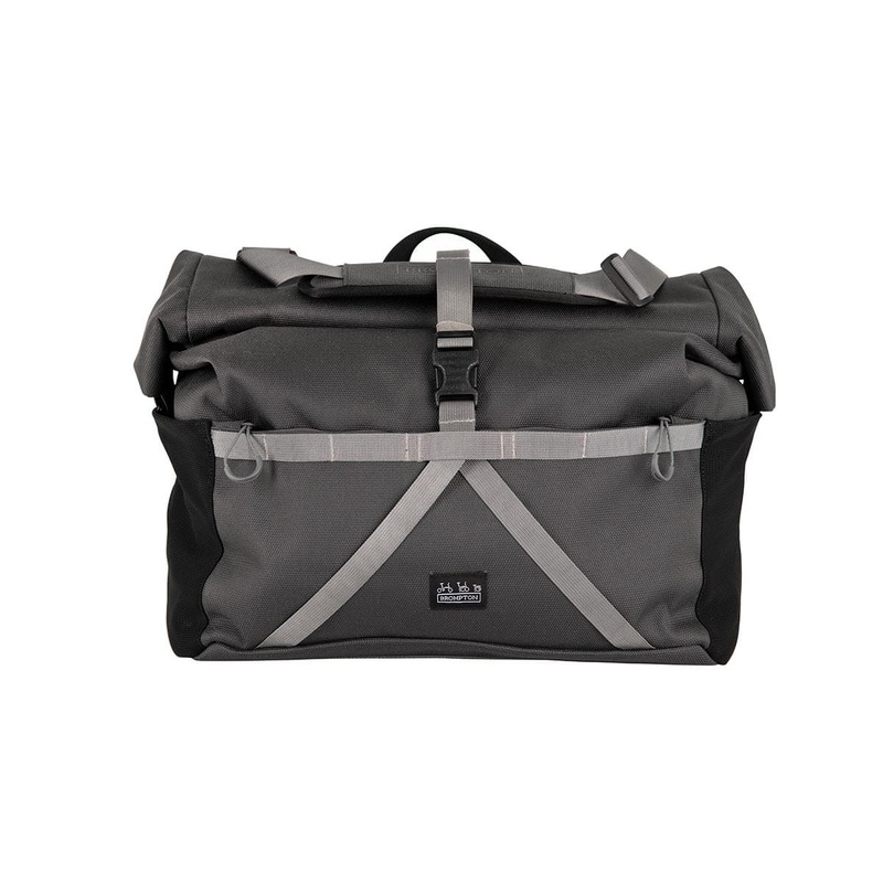 A fresh take on the T Bag, the Borough L Roll Top is made using Brompton’s exclusively developed 1000D Cordura Broken Twill fabric for superior durability and weather resistance. New features include an adjustable external load carry strap for easy access to helmets, jackets, or oversized items. There is large zipped pocket on the front for quick access to essential items, re-designed rear pockets with an integral water bottle sleeve, and a laptop sleeve.