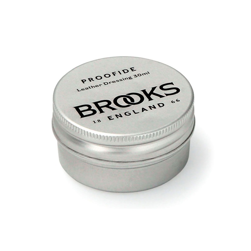 Proofide is the only substance that should be used to care for your Brooks Leather Saddle, specially formulated from natural ingredients to condition, preserve and showerproof. Apply a little of this leather saddle cream to the finished side of the leather. Allow to permeate until dry and then polish off. Also apply Proofide to the underside of the saddle, but leave this coating on to protect against dirt and moisture. It should be used several times during the breaking-in period and periodically (3-6 months) thereafter. It is recommended to polish the saddle with a soft cloth before first use.