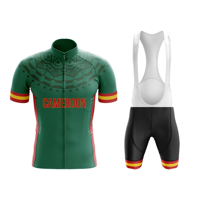 Cameroon Cycling Jersey is inspired by the flag of Cameroon and features the famous cultural pattern of Cameroon. It will be sure to be your new favorite jersey.