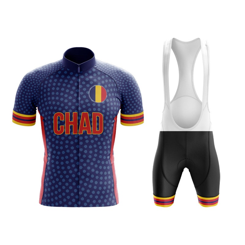 Chad Cycling Jersey is inspired by the Chad flag and features the spiral dots. It will be sure to be your new favorite jersey.