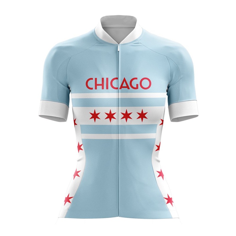 Show your city pride with the Chicago Flag Women’s Bicycle Jersey, inspired by the iconic Chicago flag. This high-performance jersey features the flag’s distinctive colors and design, combining style with functionality. Made from breathable, moisture-wicking fabric, it ensures maximum comfort and efficiency on every ride. Perfect for female cyclists who love the Windy City, this jersey blends local pride with top-tier performance.