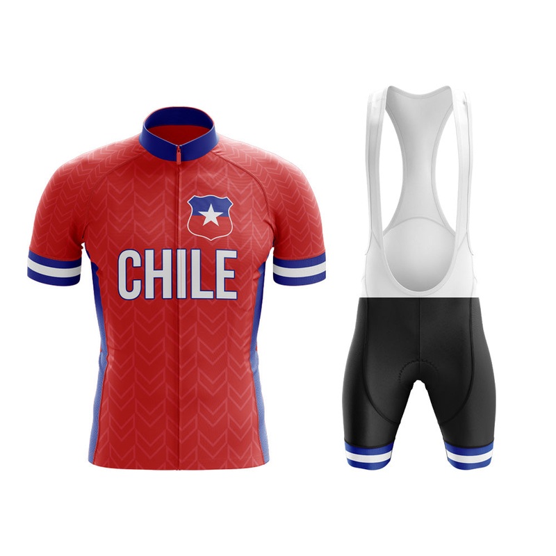 Chile Cycling Jersey is inspired by the Chile flag and features the famous arrow pattern background. It will be sure to be your new favorite jersey.