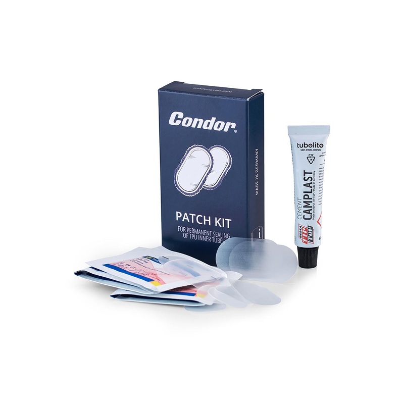 Keep rolling with the Condor TPU Repair Patch Kit, a reliable solution for fixing punctures in TPU inner tubes. Made in Germany, this kit ensures strong, long-term repairs that hold even in high temperatures.Each set includes 5 large and 5 small patches, a