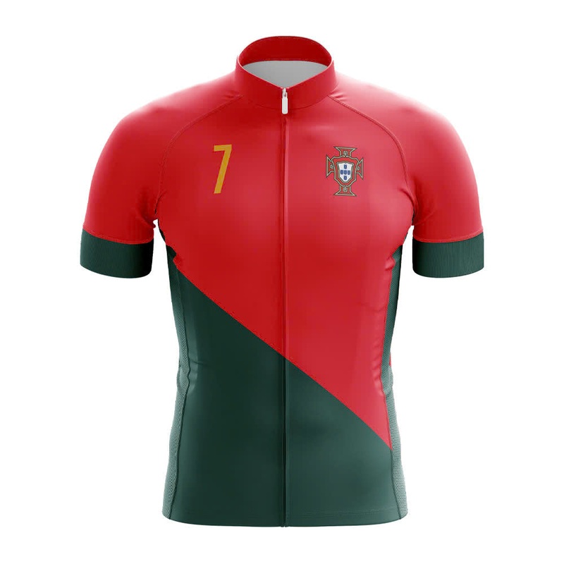 Channel elite finishing with Portugal-inspired colors and the famed number 7. This performance cycling jersey delivers breathable, moisture-wicking, quick-dry comfort and a secure fit for tempo sessions, long endurance rides, and fast group sprintsfootball