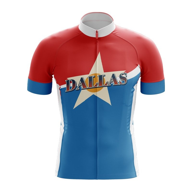 Dallas star cycling jersey. More Texan cycling gear is available here.Regular fit.Ventilated side mesh.Front concealed zipper.Three rear pockets.Internal silicone waist strip.Double-stitched fabric.UPF of 35.Free worldwide shipping on all orders! Kindly re