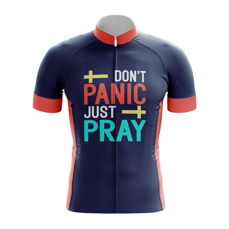 Stay calm and ride on with the Don't Panic Just Pray Bicycle Jersey. This inspirational jersey features a meaningful design that combines faith and cycling, offering comfort and motivation for every ride. Made from high-quality, breathable fabric, it ensur