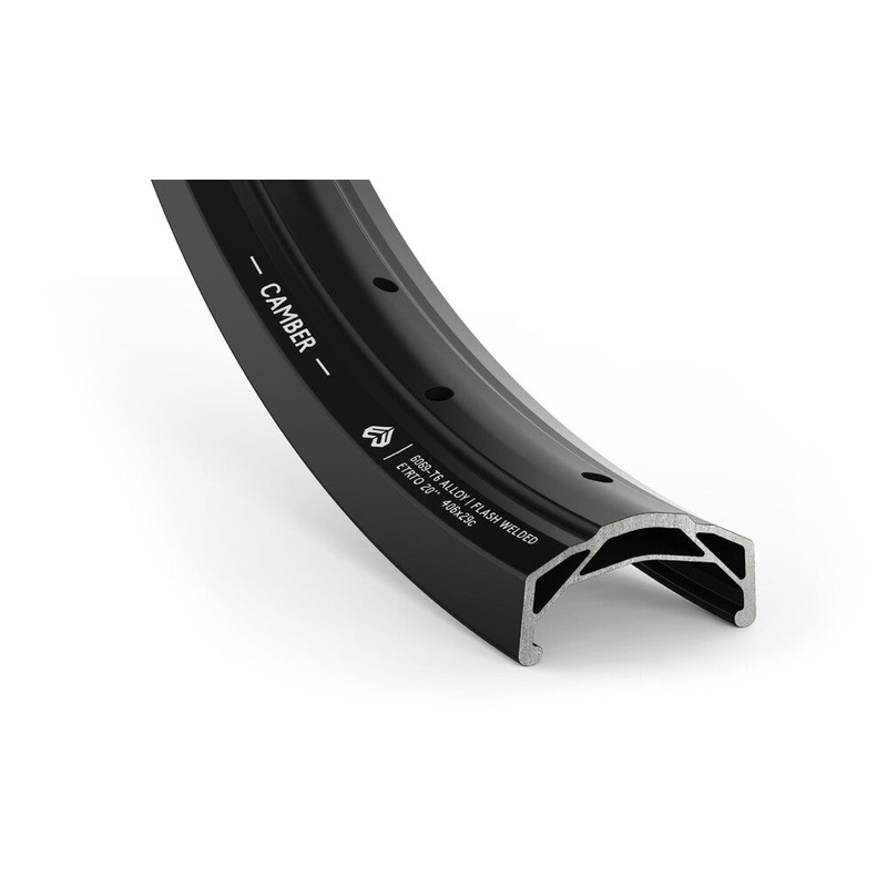 TheCamber Rimfrom Eclat utilizes a taller rim profile with increased thickness sidewalls and material around the spoke area to prevent the spokes pulling through the rim. Available in a flash-welded or a more affordable yet still insanely strong sleeved op
