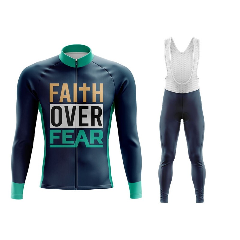 Faith Over Fear Long Sleeve Winter Cycling Jersey & Pants. Find moreChristian cycling clothes here.