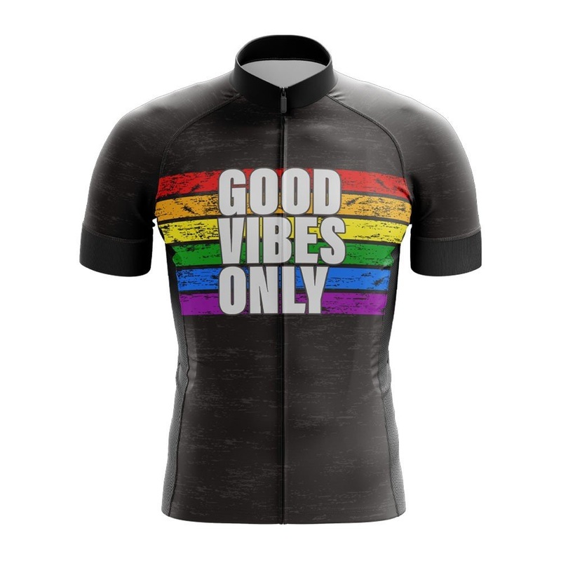 Embrace the positivity on your rides with the “Good Vibes” cycling jersey. Featuring vibrant rainbow-themed lettering, it’s an ode to joy, love, and all the colors of life.Find more great LGBTQ+ cycling gear in the dedicated collection.