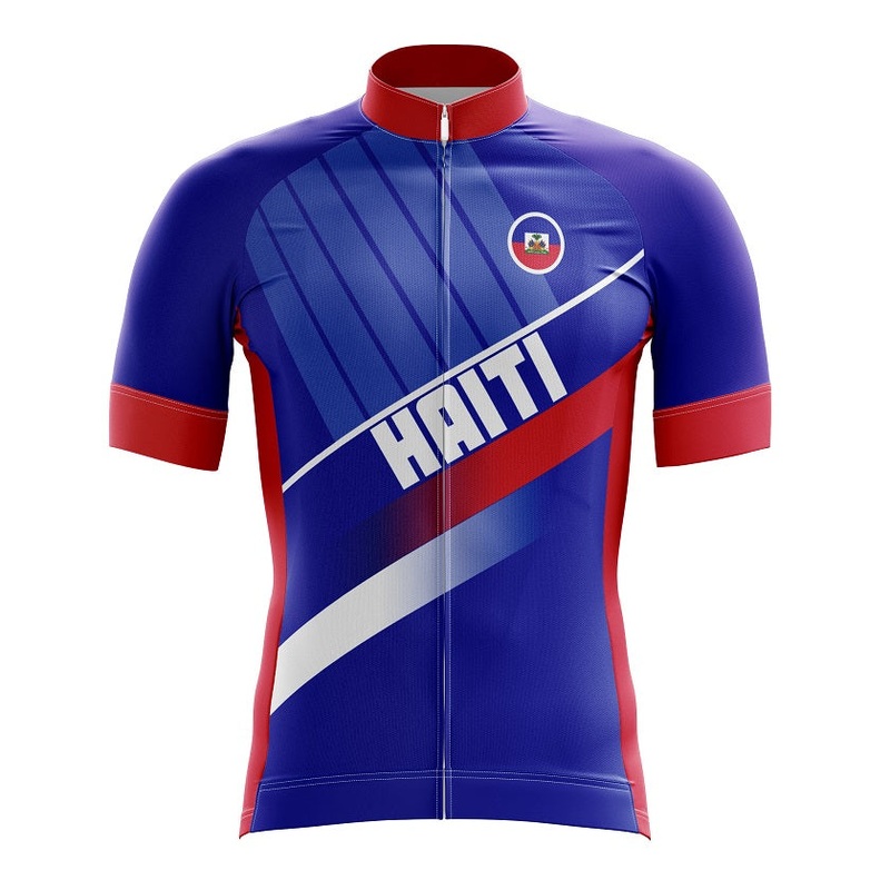 The Haiti Cycling Jersey is ultra-comfortable, dries quickly and has an athletic cut. It has three rear pockets, a full-length front zipper, and three open pockets on the back for extra storage.
