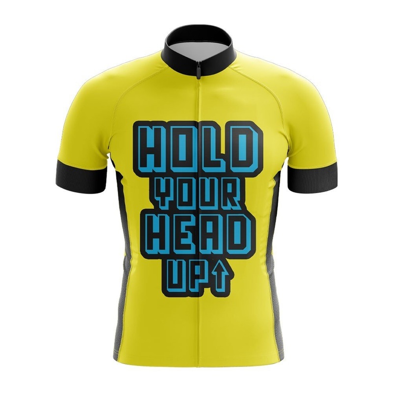Hold your head up. Find more cycling clothes featuring quotes & sayings over here.