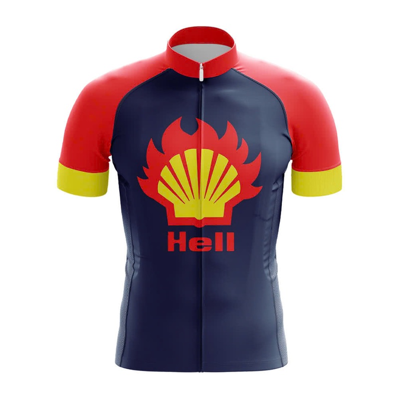 Turn up the heat with the Hell Cycling Jersey, a clever parody of the iconic oil company logo. This fiery design combines humor and attitude, making it perfect for cyclists who ride with a bit of edge. Lightweight, breathable, and built for performance, its as bold as your rides.