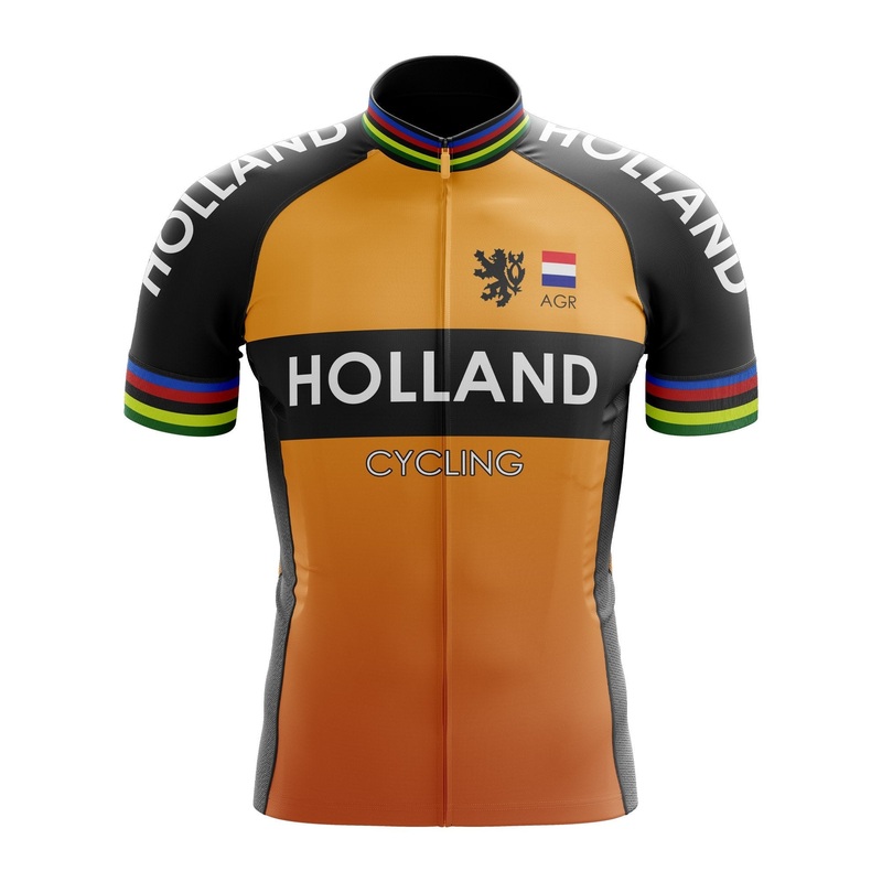 Our Holland cycling jersey is crafted of performance polyester mesh fabric with stretch inserts for comfort during high-intensity rides.Find lots more great Netherlands cycling clothes here.Regular fit.Front concealed zipper for increased ventilation.Three