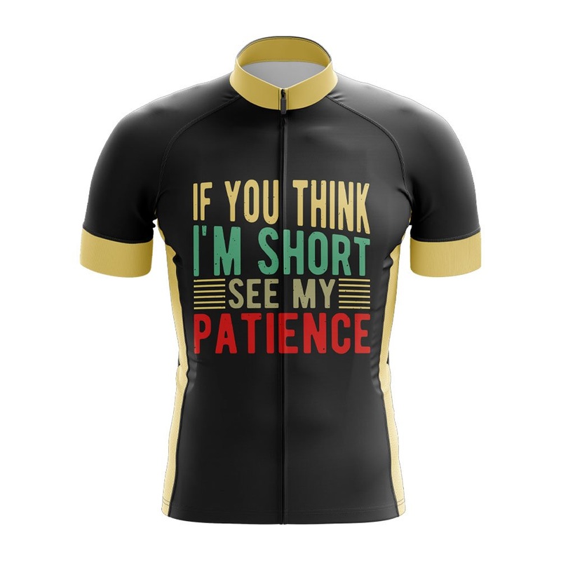 Express yourself with a dash of humor with the If You Think I’m Short, See My Patience Cycling Jersey. Perfect for those who tackle the road with wit and a smile!Find more fun jerseys in this collection.