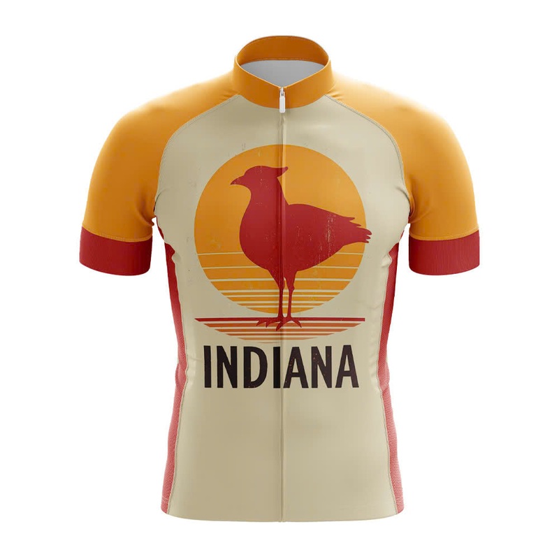 Soar through Indianas trails with the Northern Cardinal Cycling Jersey, inspired by the state birds vibrant red beauty. Lightweight and breathable, this jersey keeps you comfortable while showcasing your love for Indianas natural charm. Perfect for cyclist