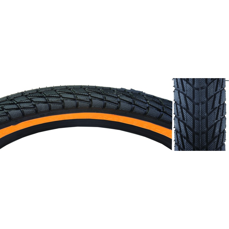 Park/street tire, with directionally grooved tacky tread.Style:StandardSize:20x1.95ISO:406Bead:WireTread/SW:Bk/OrgPSI:65