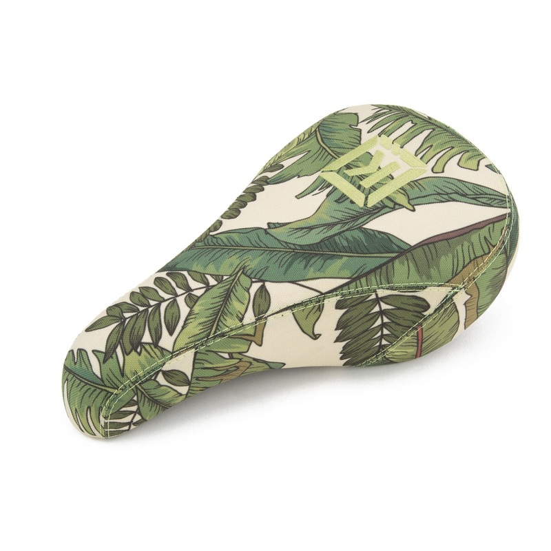 The Kink Overgrown Stealth seat starts with thick foam padding and a four panel heavy duty canvas cover.The colorful sublimated graphic panels will breathe a bit of fresh air into your bike setup, and the top panel features an embroidered K Brick logo.This