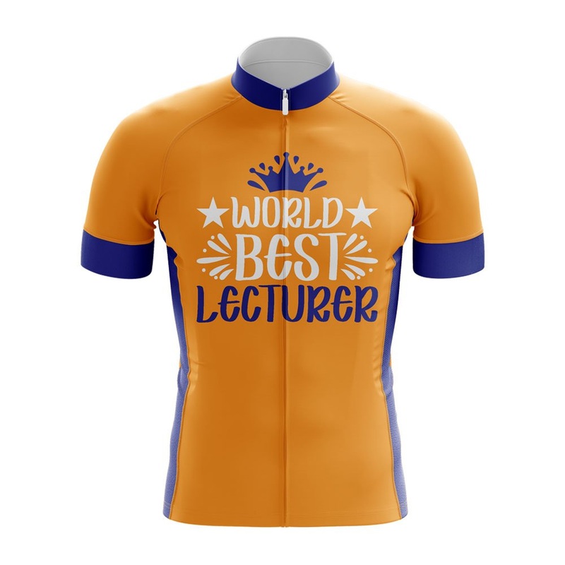 Show the world you’re the best with the Lecturer Bicycle Jersey. Featuring the slogan “World’s Best Lecturer,” this high-performance jersey is perfect for educators who love cycling. Made from breathable, moisture-wicking fabric, it ensures comfort and performance on every ride.
