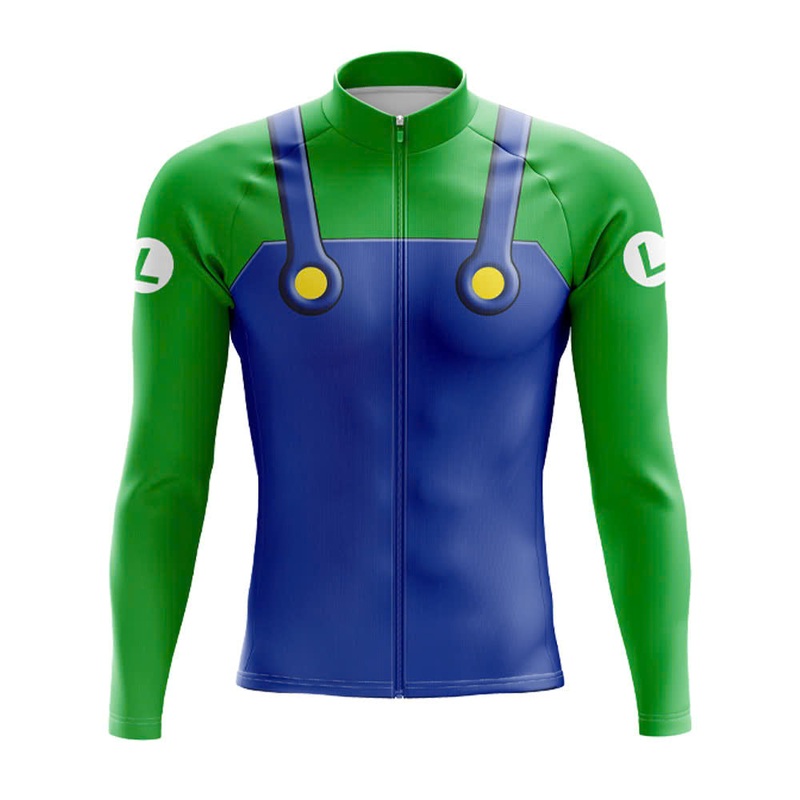Channel your favorite video game character with the Luigi Long Sleeve Cycling Jersey. Designed for fans of the iconic green plumber, this jersey offers both style and warmth, making it perfect for cooler weather rides while showcasing your playful side on