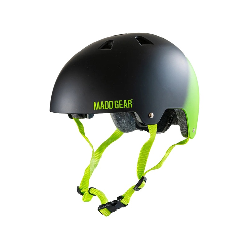 - IMPACT RESISTANCE: The Madd Gear scooter helmet uses a durable tough ABS shell and soft EPS foam liner to absorb external pressure caused by a crash in any skating activity. The MG helmet allows the rider to feel safe and confident while performing.