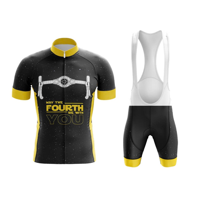 Celebrate Star Wars Day on two wheels with the May the Fourth Cycling Kit, a must-have for fans of the galaxy far, far away. Featuring bold, sci-fi-inspired designs, this full kit blends high-performance cycling gear with legendary Star Wars energy. Crafted with lightweight, moisture-wicking fabric, the jersey and bib shorts ensure comfort and breathability on every ride. Whether youre training for battle or cruising through the stars, this kit keeps the Force strong with you. Also available as a short sleeve or long sleeve jersey.