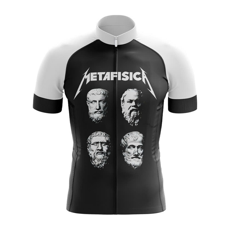 Unleash your inner philosopher with the Metafisica Cycling Jersey. This unique jersey blends the iconic imagery of ancient Greek philosophers with the edgy style of rock culture, making it a must-have for cycling enthusiasts who appreciate both intellect a