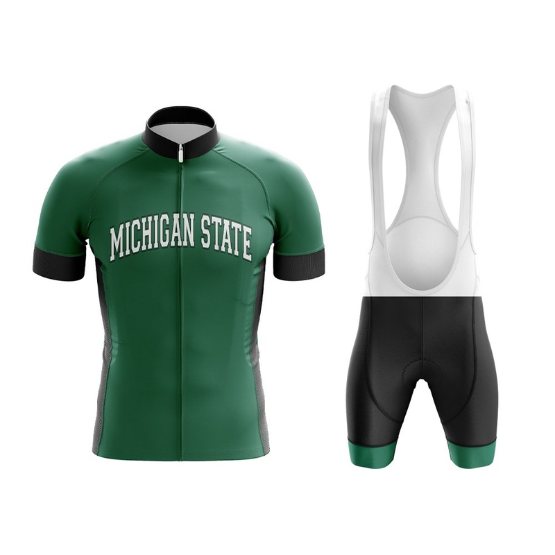 Show your Spartan pride with our Michigan State Bicycle Jersey and matching Bib Shorts, inspired by the iconic green and white colors of Michigan State University. This high-performance cycling set features breathable, moisture-wicking fabric for ultimate comfort and efficiency on every ride.