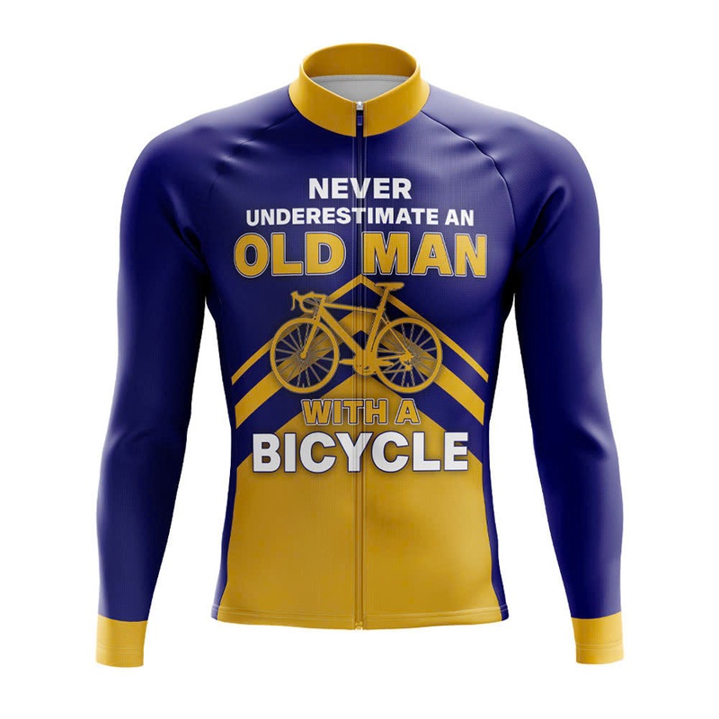 Keep warm and motivated on your rides with the “Never Underestimate an Old Man with a Bicycle” long sleeve cycling jersey. Designed for cooler weather, this jersey provides added warmth and a powerful message that celebrates the strength and determination of seasoned cyclists.