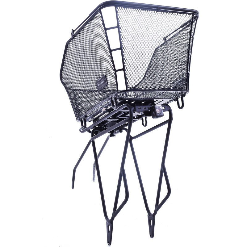 Bontrager KIK Rack/Basket Combo w/ Rear Light.Brand: BontragerModel: MIKCarry Location: RearWeight: 2868 gramsWeight Limit: 55 lbsAttachment Method: Bolt-OnMaterial: Aluminum / SteelDisc Brake Compatible: Yes