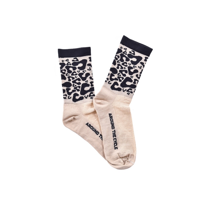 NEW DeFeet x ATC Cheetah Cycling Socks, Tan/Black SM