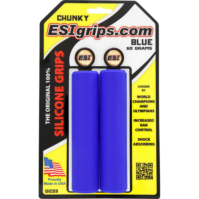 NEW ESI GRIPS,CHUNKY,BLUE 60G,SILICONE,W/PLUGS,130MM