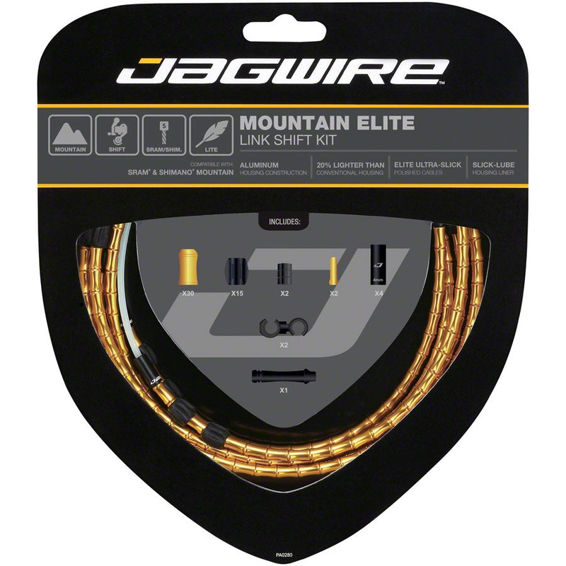 NEW Jagwire Mountain Elite Link Shift Cable Kit SRAM/Shimano with Ultra-Slick Uncoated Cables, Gold