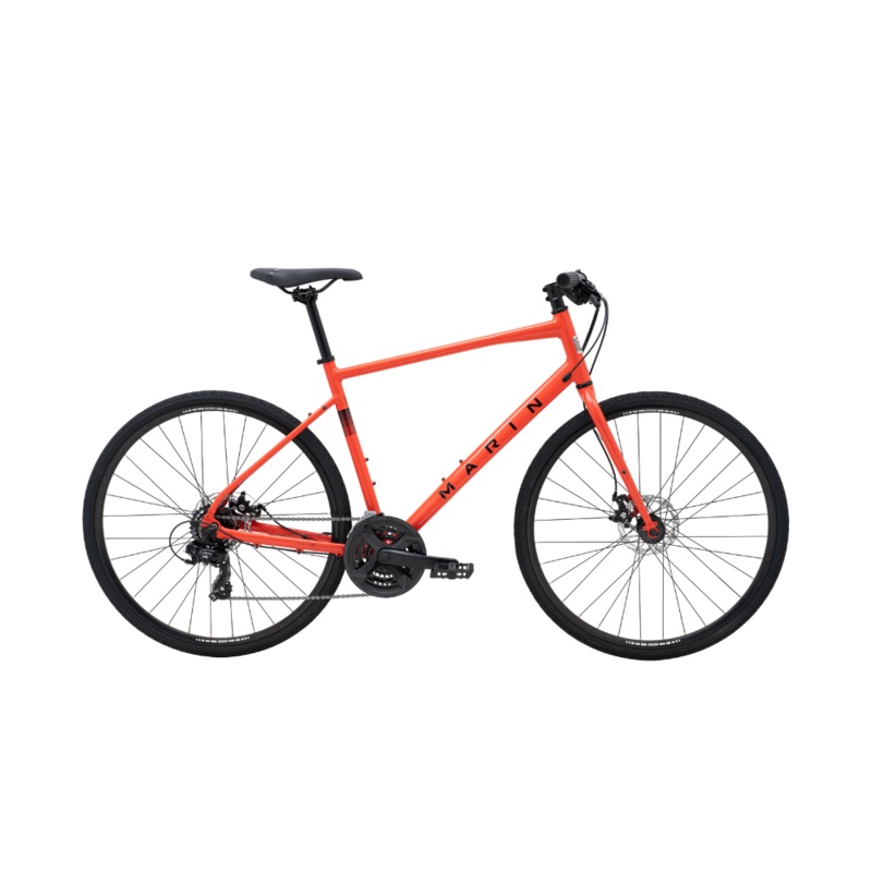 The Fairfax 1 is the most affordable in the collection. Named Best Hybrid many years running by Wirecutter its built around a lightweight Series 1 aluminum frame and a sturdy CrMo fork and comes with a 3×7-speed Shimano drivetrain, Tektro mechanical disc brakes and plenty of reliable Marin components.