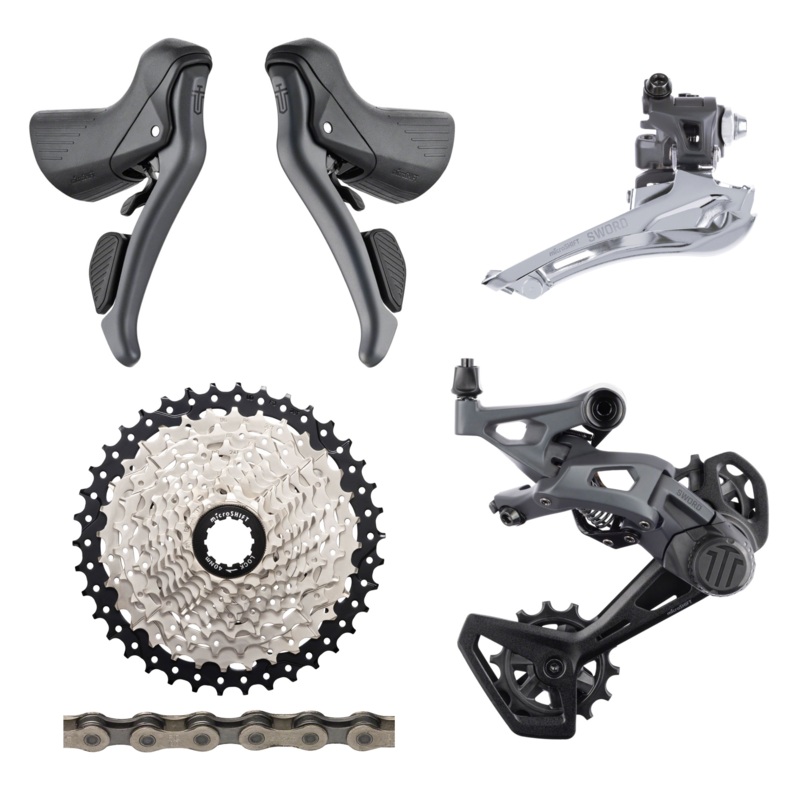 - Shifters: microSHIFT Sword Drop Bar Shifter/Brake Lever Set – 2x, 10-Speed, Sword Compatible, Gray, Version B