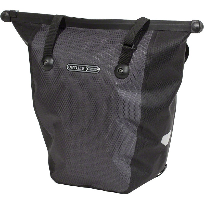 This waterproof shopper bag mounts to the rear rack like a single pannier yet comes off and features carry handles for shopping convenience