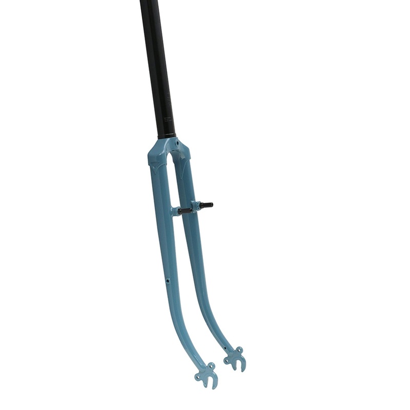 wheel:700csteerer (stem/race):straight (28.6/30.0)axle-crown:390mmdropout:9x100mm QRbrake mount:cantilevercolor:colonial blueCrMo fork with lugged sloping crownMid-blade low rider pannier braze-ons, double eyelets at dropouts50mm rake