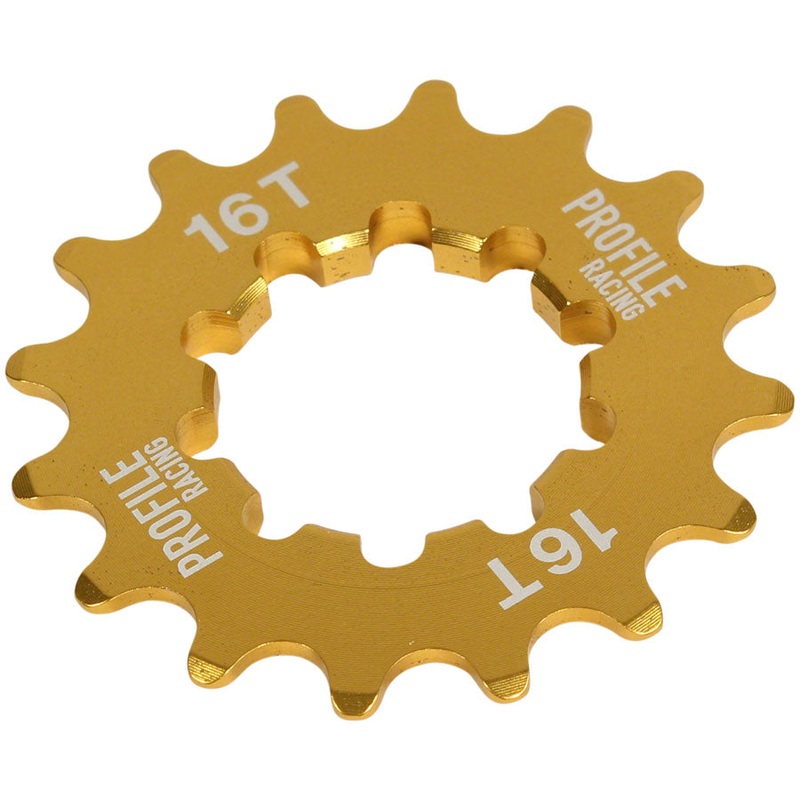 Profile Racing BMX Cassette Cogs. Fits Profile cassette hubs only Tooth Count: 16 Cassette Body Type: Profile Racing Defined Color: Gold Material: Aluminum Drivetrain Speeds: Single Speed 3/32"