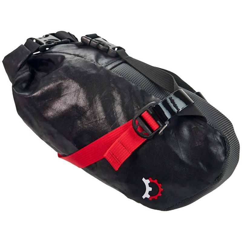 The Shrew seat bag is a low profile, roll top bag that fits pretty much any bike out there, dropper posts included. It utilizes the indie-rail straps, and has an integrated bottom support to prevent any sag or sway. It holds just the right amount of stuff