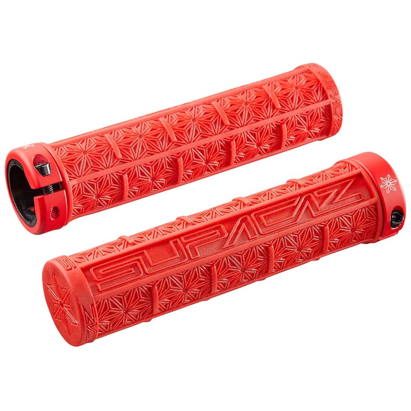 Supacaz Grizips grips feature dual density rubber with a highly embossed grip pattern for maximum control. Single sided locking ring Flange: No Color: Red Defined Color: Red Grip Shift Specific: No Shape: Round Weight: 130 Lock On: Yes