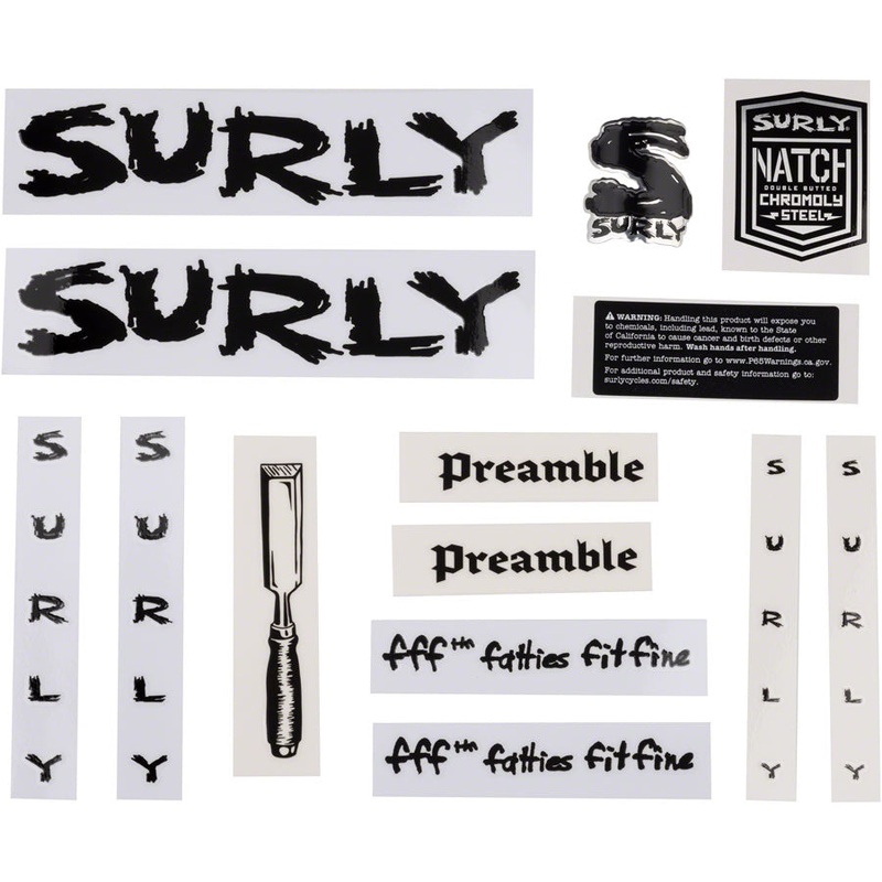 Genuine Surly Frame Decal Set for Preamble frameset, to customize your Surly, or to make it look new again.For repair, repaint or whateverDry transfer styleHeadbadge included