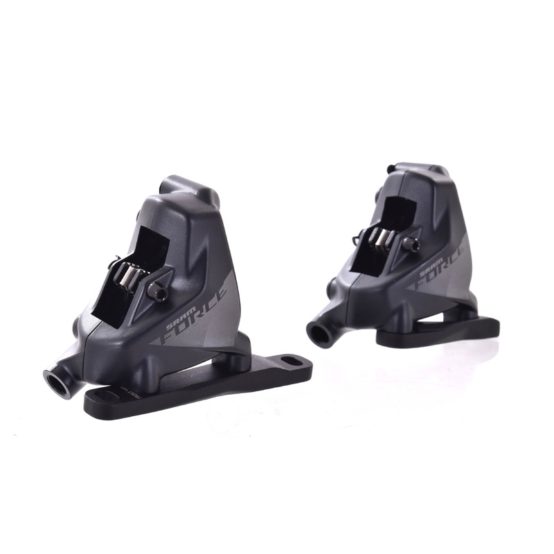 For sale is a set of NEW take off SRAM Force eTap AXS disc brake calipers. The flat mount calipers include front and rear adapters for 160mm rotors and new pads. Each came installed with a new lever that ended up mated to a different brake caliper.SPECS:ra