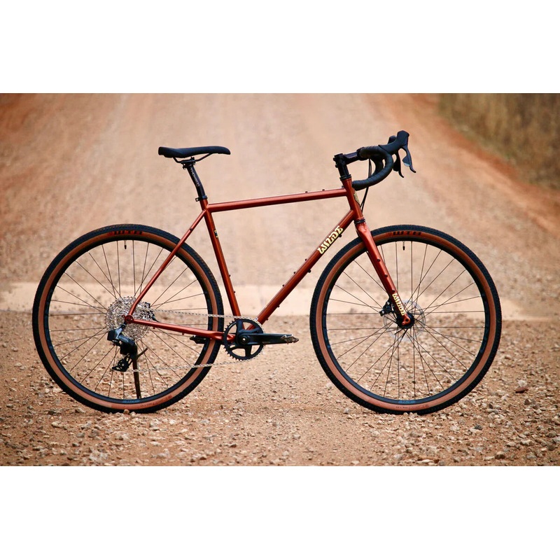 We are offering three stock build packages, SRAM Rival AXS, Shimano GRX 12-speed, and SRAM Apex Eagle 12-speed.