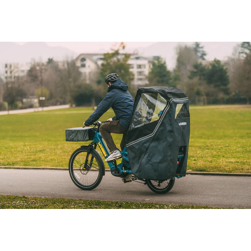 The Pop Shelter provides exceptional weather protection for longtail bikes. An evolution of theEco Pop Top, the Pop Shelter is longer and offers full coverage of passengers, from head to toe. Made from high-quality materials, it shields passengers from rain, wind, snow, and sun. Unlike theEco Pop Top, it attaches directly to a Yuba bike rack, without requiringMonkey Bars. It also features adjustable airflow for optimal comfort and reflective strips for enhanced visibility and safety.