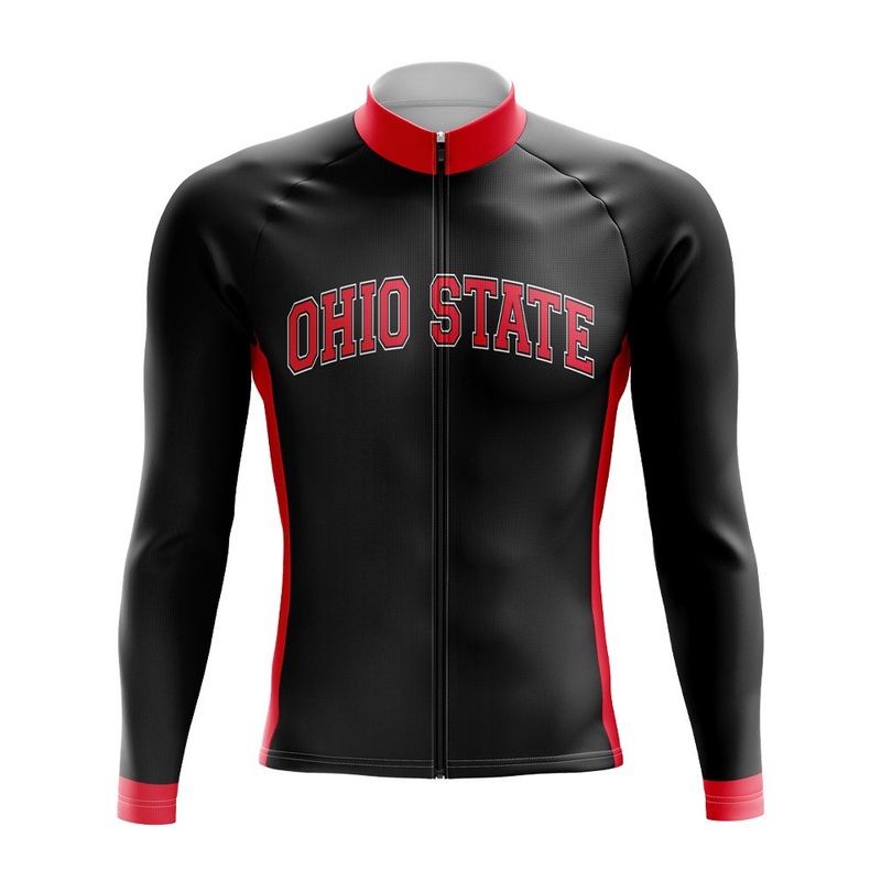 Gear up for cooler rides with the Ohio State Long Sleeve Cycling Jersey. This jersey is a nod to the Buckeye State, blending Ohio’s signature scarlet and gray with a comfortable, long-sleeve design. It’s perfect for Ohio State fans and cyclists who want to show their state pride while staying warm on brisk rides. Check out ourcollection page for more university cycling jerseys. Discover more Ohio-themed cycling gear in our dedicated collection.