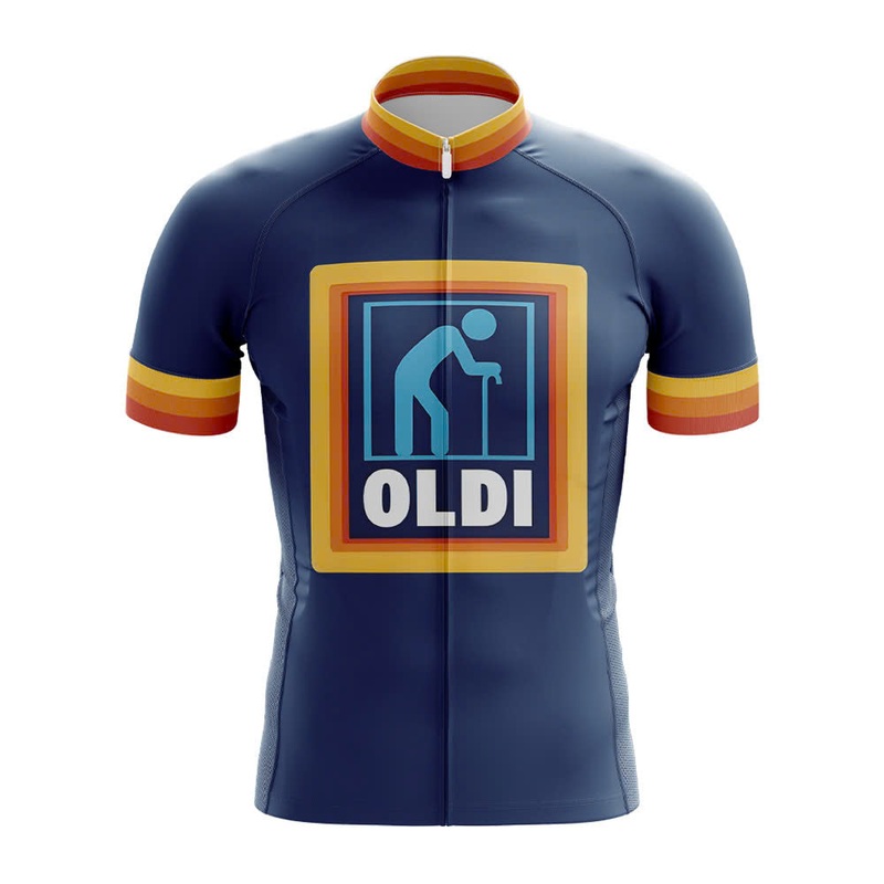 Celebrate the wisdom and endurance of senior cyclists with the Oldi Cycling Jersey, a fun parody of the iconic Aldi logo. Designed for riders who know that cycling isnt just about speedits about enjoying the ride, staying active, and having fun. Made from lightweight, moisture-wicking fabric, this jersey offers comfort and breathability for every mile, proving that age is just a number when youre on two wheels.