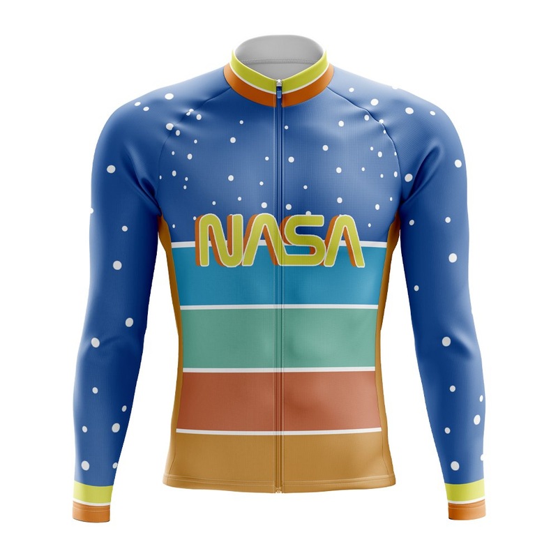 Elevate your cool-weather riding with the Orbital Layers Long Sleeve Cycling Jersey. This jersey’s design, featuring concentric colored lines reminiscent of planetary orbits, centers around the NASA insignia for a look that’s out of this world. Available in both regular and thermal materials, it’s engineered for comfort and performance, whether you’re braving a chilly morning launch or a breezy evening descent.Find more cycling clothesrelated to outerspaceover here.