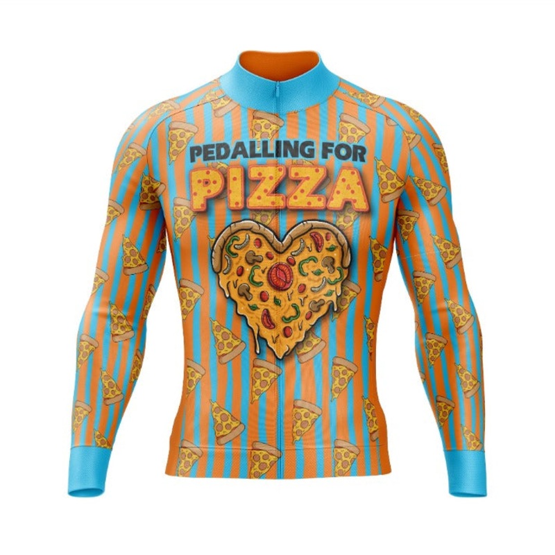 Pedaling for Pizza cycling jersey. Find more cycling clothes related to food over here.